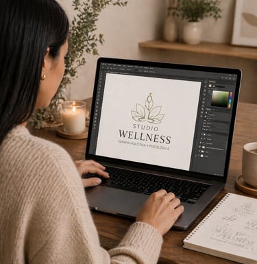 Crearemos un logotipo desde cero, realizando una búsqueda de tipografías, símbolos y colores que construyan una identidad alineada con el propósito del centro de apoyo Studio Wellness.