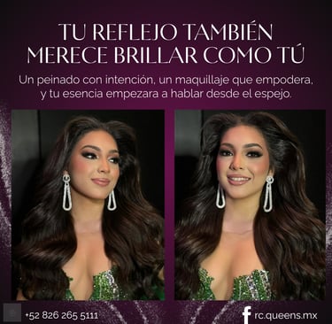 RCQueens es un Salon fundado por Beatriz Cavazos una reina de los certámenes de belleza que se dedica a dar servicio de maquillaje y peinado profesional para misses, influencers, y mujeres en toda la república mexicana. Además en su negocio da servicios de tratamiento orgánico, diseño de color, manicura en uñas, aplicación de pestañas, depilación, y masajes.