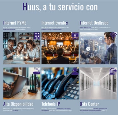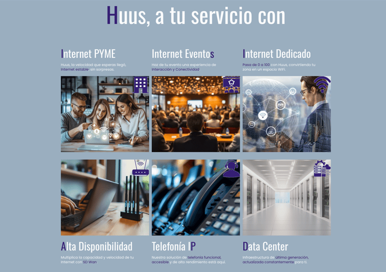 Huus es una empresa de servicio de internet dedicado y videovigilancia, que monitorea desde su Firewall la seguridad de la red de cualquier dispositivo utilizado en la organización, por la parte de la vigilancia también manejan la venta de cámaras de seguridad que también tienen en revisión con su sistema.
