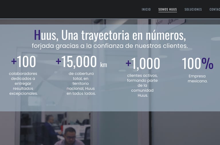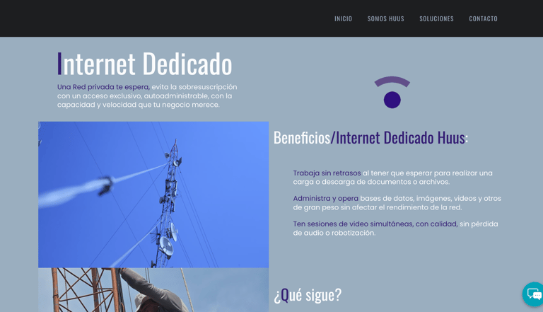 La primera sección de tu sitio resume los productos o servicios que ofrece tu negocio, sus diferenciadores, sus casos de éxito, y un formulario de contacto.